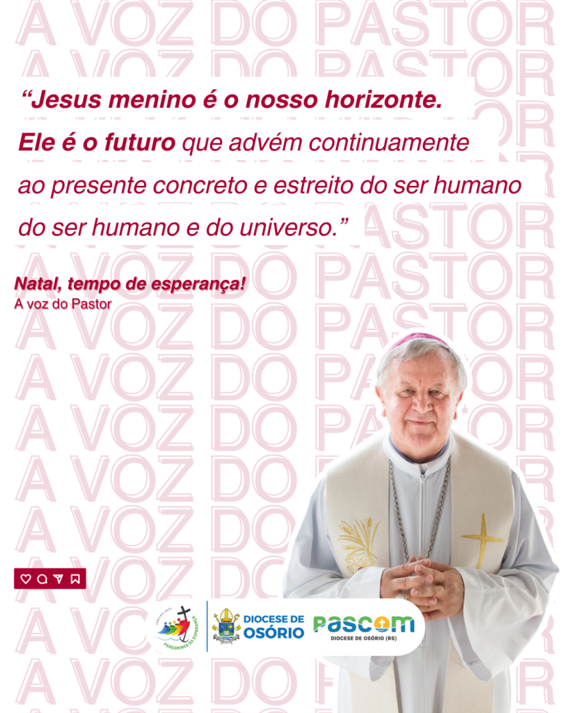 Em artigo publicado por ocasião das celebrações natalinas, o bispo da Diocese de Osório, dom Jaime Pedro Kohl, destaca o Natal como um tempo privilegiado de renovação da esperança cristã. O texto recorda o conjunto de celebrações vividas neste período, como a solenidade da Sagrada Família e o encerramento do Jubileu da Esperança em nível diocesano, em comunhão com toda a Igreja no mundo. Para o bispo, o nascimento de Jesus ilumina a caminhada humana mesmo em meio às incertezas e sombras da realidade atual, convidando os fiéis a manterem o olhar voltado para o horizonte da fé.