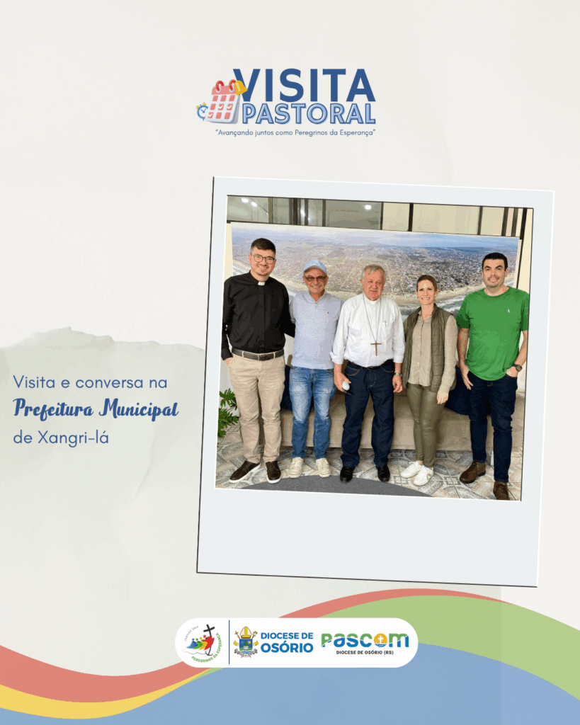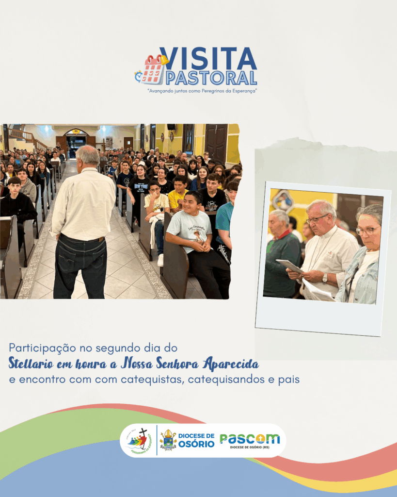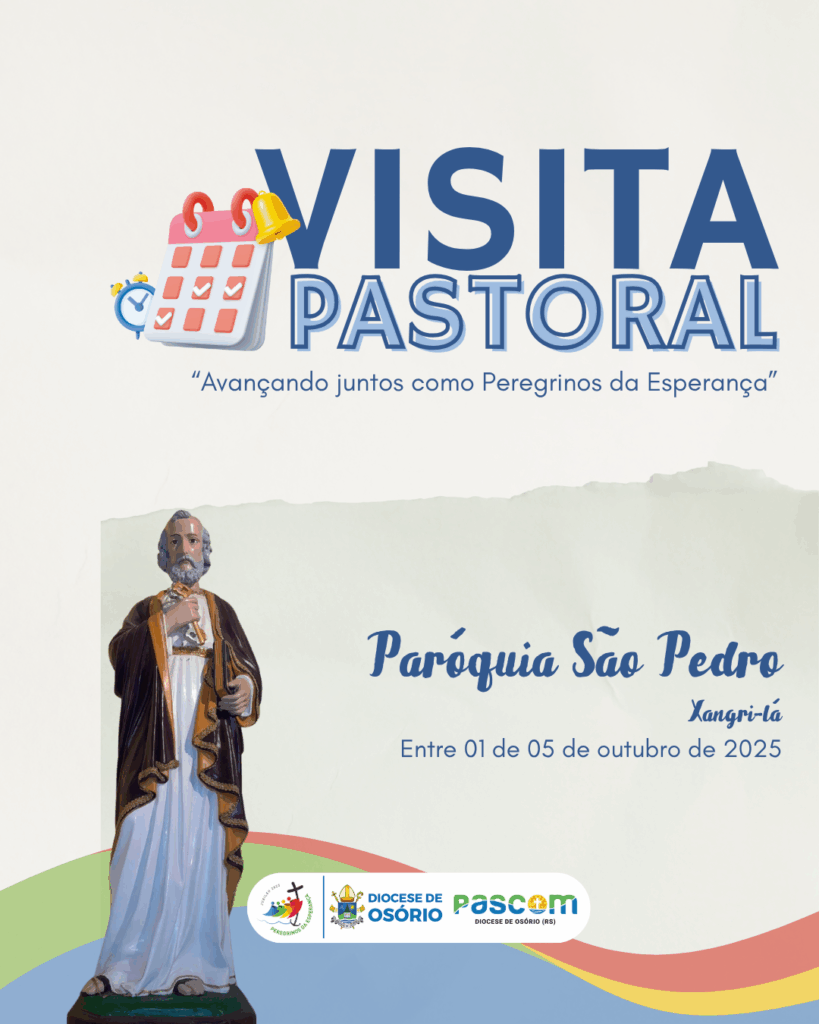Entre os dias 1º e 5 de outubro de 2025, o bispo diocesano realizou a Visita Pastoral à Paróquia São Pedro, em Xangri-Lá, acolhido pelo pároco Pe. Ricardo Justin Jacoby e pelas comunidades locais. A programação incluiu encontros com o prefeito Celso Bassani Barbosa, celebrações eucarísticas, momentos de oração e diálogo com lideranças e fiéis. Foram visitadas famílias, enfermos e o Residencial de Idosos Bella Vita, evidenciando a presença pastoral da Igreja junto aos mais necessitados. O bispo também participou do Stellario em preparação à festa de Nossa Senhora Aparecida e manteve reunião com o Conselho Pastoral Paroquial, que apresentou o trabalho das diversas pastorais, com destaque para a Iniciação à Vida Cristã, a Liturgia e as ações sociais que atualmente beneficiam 160 famílias.