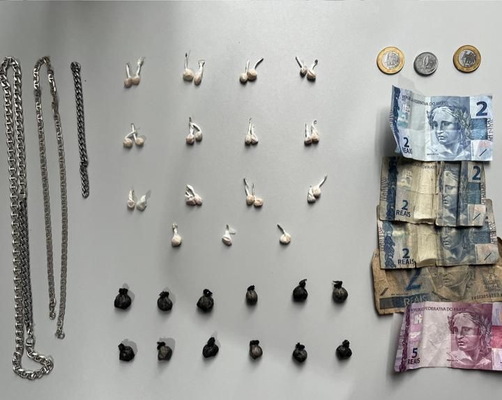 Durante patrulhamento, a equipe policial abordou o trio no bairro Medianeira. Na revista pessoal, foram encontradas 12 buchas de cocaína, 28 pedras de crack, R$ 15,50 e três correntes de prata.