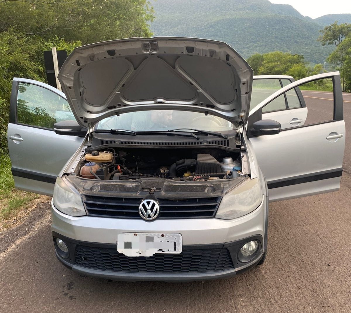 O veículo foi localizado trafegando pela BR-101 em direção a Santa Catarina e a abordagem foi realizada na RS-407. Durante a fiscalização, os policiais constataram que o carro utilizava placas clonadas. Após verificação, foi identificado que as placas originais pertenciam a um automóvel roubado em Porto Alegre no ano de 2017.