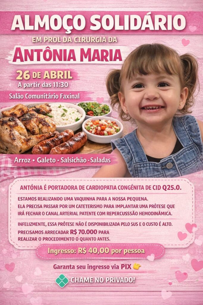 Há histórias que não cabem apenas nos fatos. Elas atravessam o peito, pedem pausa e exigem sensibilidade. A da pequena Antônia Maria, de 2 anos e 3 meses, é uma dessas. Entre risos leves, brincadeiras inocentes e um olhar que ainda descobre o mundo, existe um coração que precisa de ajuda, e com urgência.