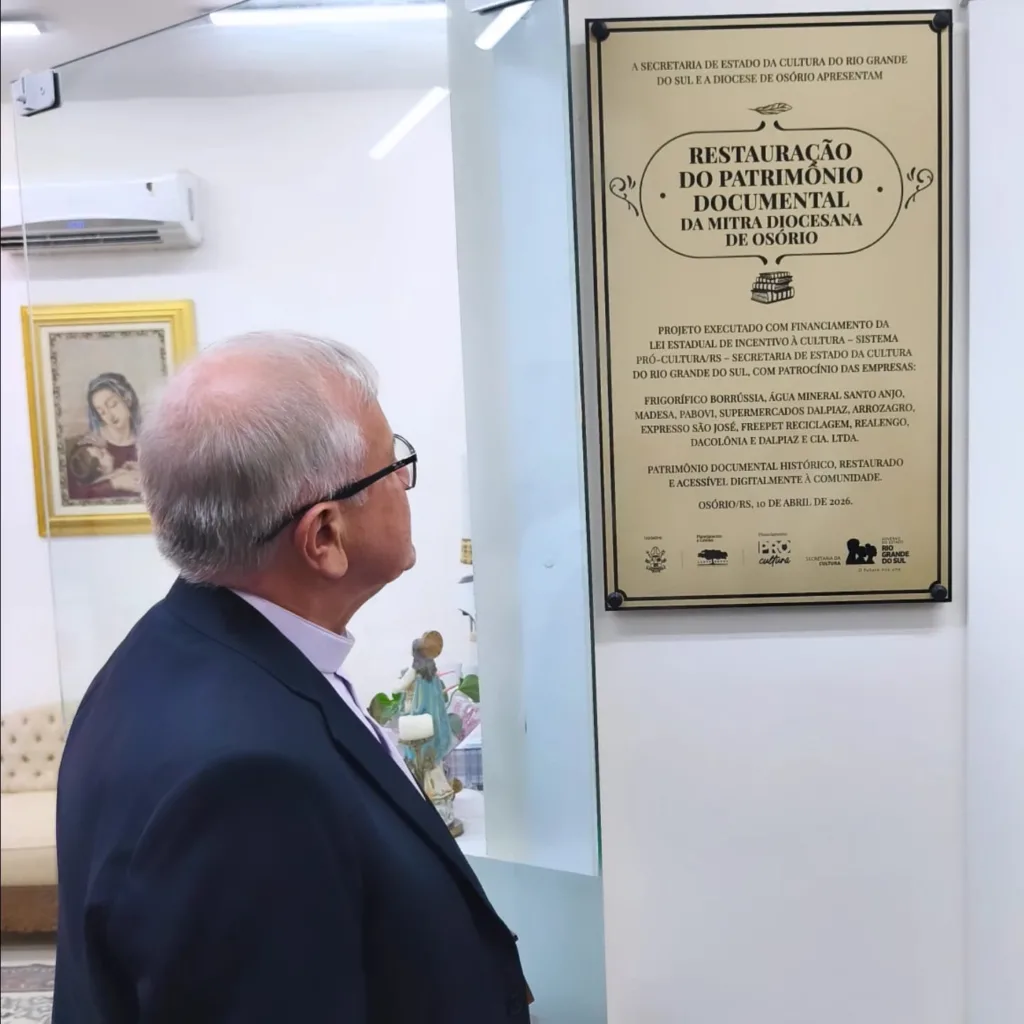 A noite da última sexta-feira, 10 de abril, marcou mais do que a entrega de um projeto, simbolizou a devolução da memória ao seu povo. Em cerimônia realizada na Cúria Diocesana, em Osório, a Diocese inaugurou oficialmente o acervo documental histórico, resultado de um processo técnico e institucional que mobilizou esforços ao longo de três anos e consolidou um dos mais relevantes patrimônios documentais da região.