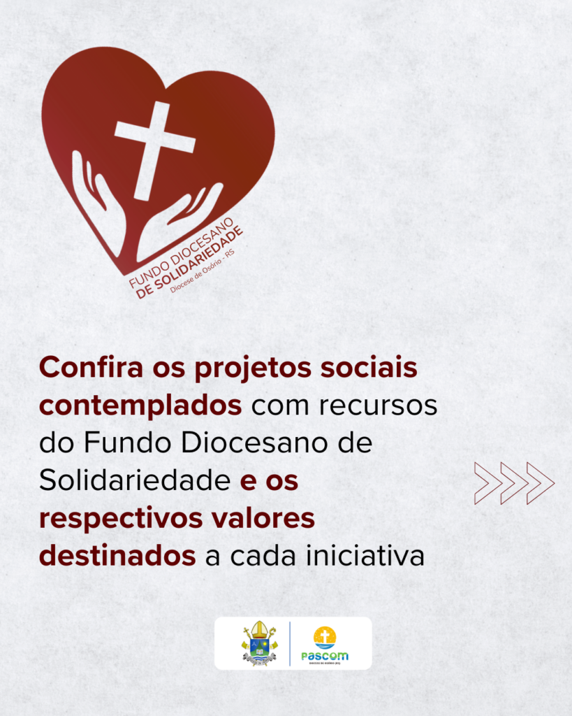 A Diocese de Osório efetuou o repasse dos recursos do Fundo Diocesano de Solidariedade (FDS) aos oito projetos contemplados no Edital 2025, autorizando oficialmente o início da execução das ações sociais nas paróquias e pastorais beneficiadas. O montante total liberado é de R$ 23.890,25, conforme deliberação do Conselho Gestor, após análise técnica das propostas inscritas. Com a transferência dos valores, as iniciativas entram agora na fase prática, com acompanhamento ao longo do ano, conforme critérios estabelecidos em edital.