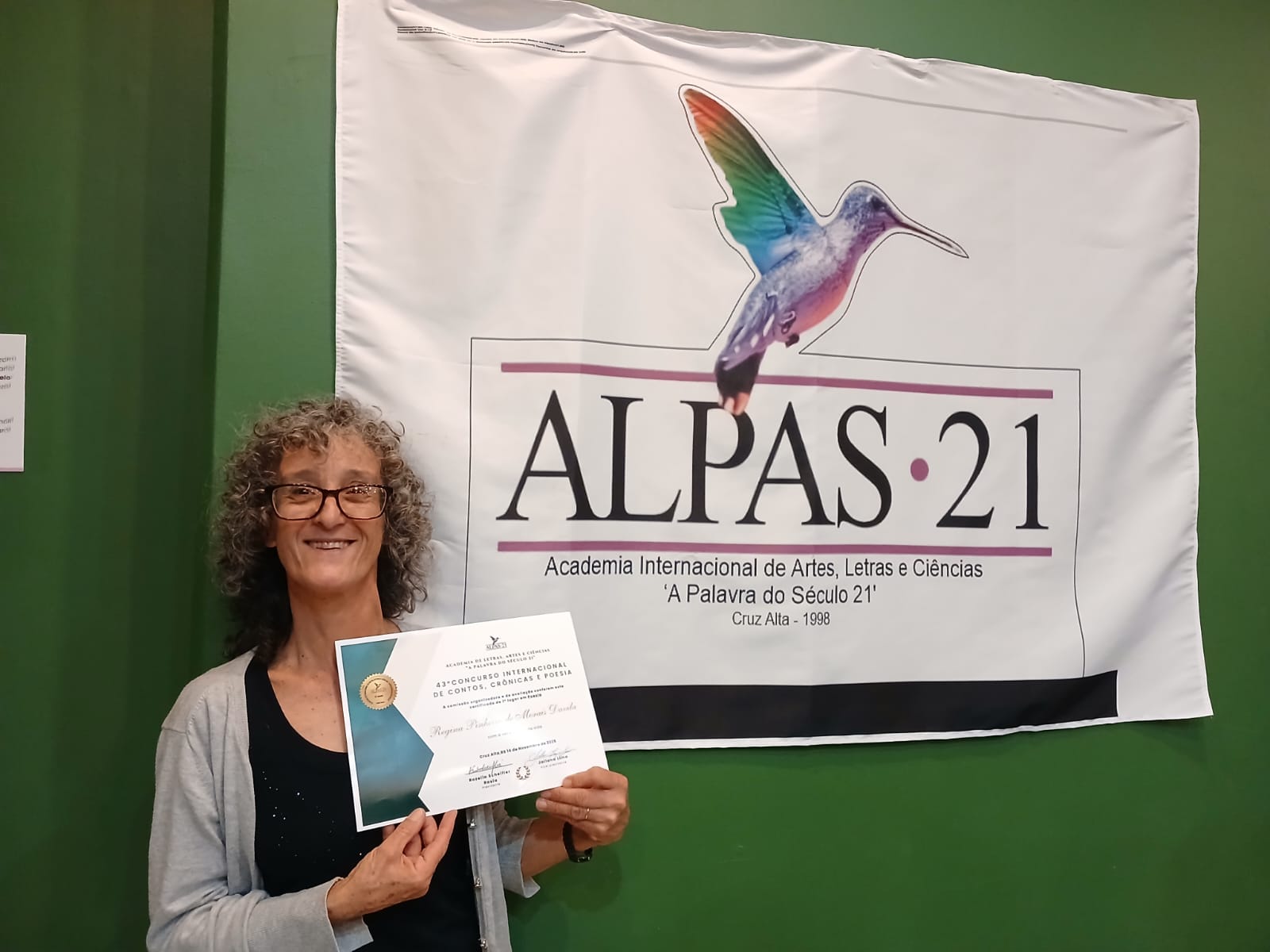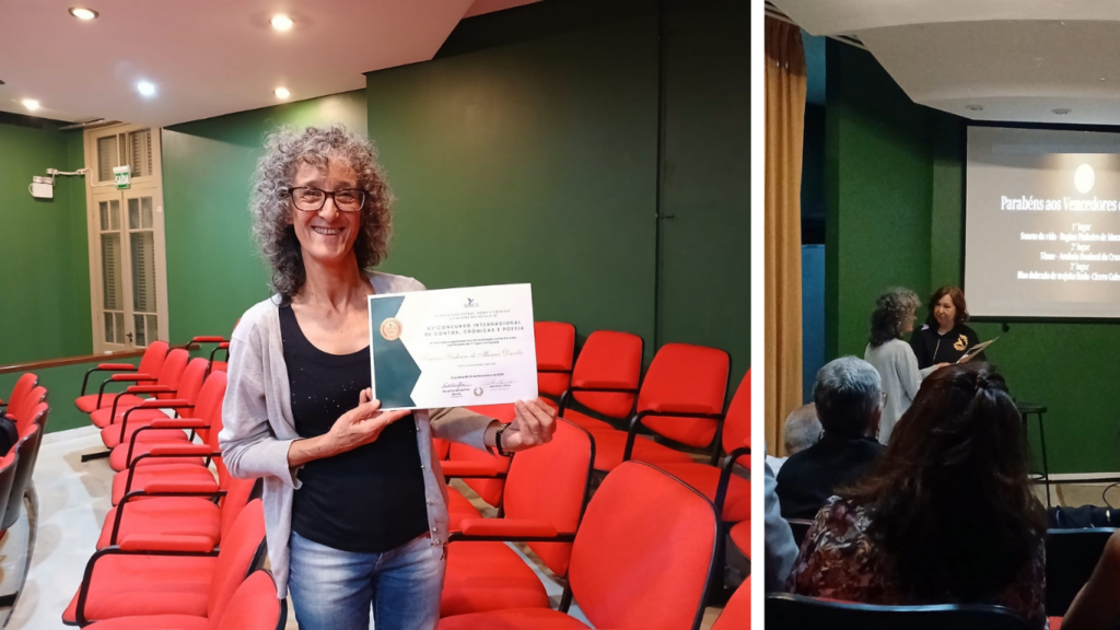 A escritora também relatou que a cerimônia de premiação ocorreu na Casa de Cultura Mário Quintana, em Porto Alegre. Fátima recebeu o diploma e lembrou que o registro em vídeo da entrega está disponível no YouTube.