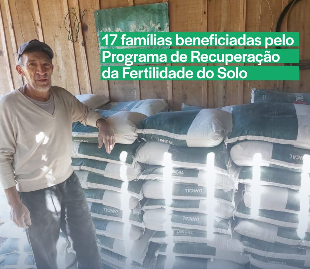 Até agora, 17 famílias foram beneficiadas pelo Programa, recebendo 96 toneladas de composto orgânico, 92 toneladas de calcário, 166 sacos de ureia e 182 sacos de adubo 5-20-20.