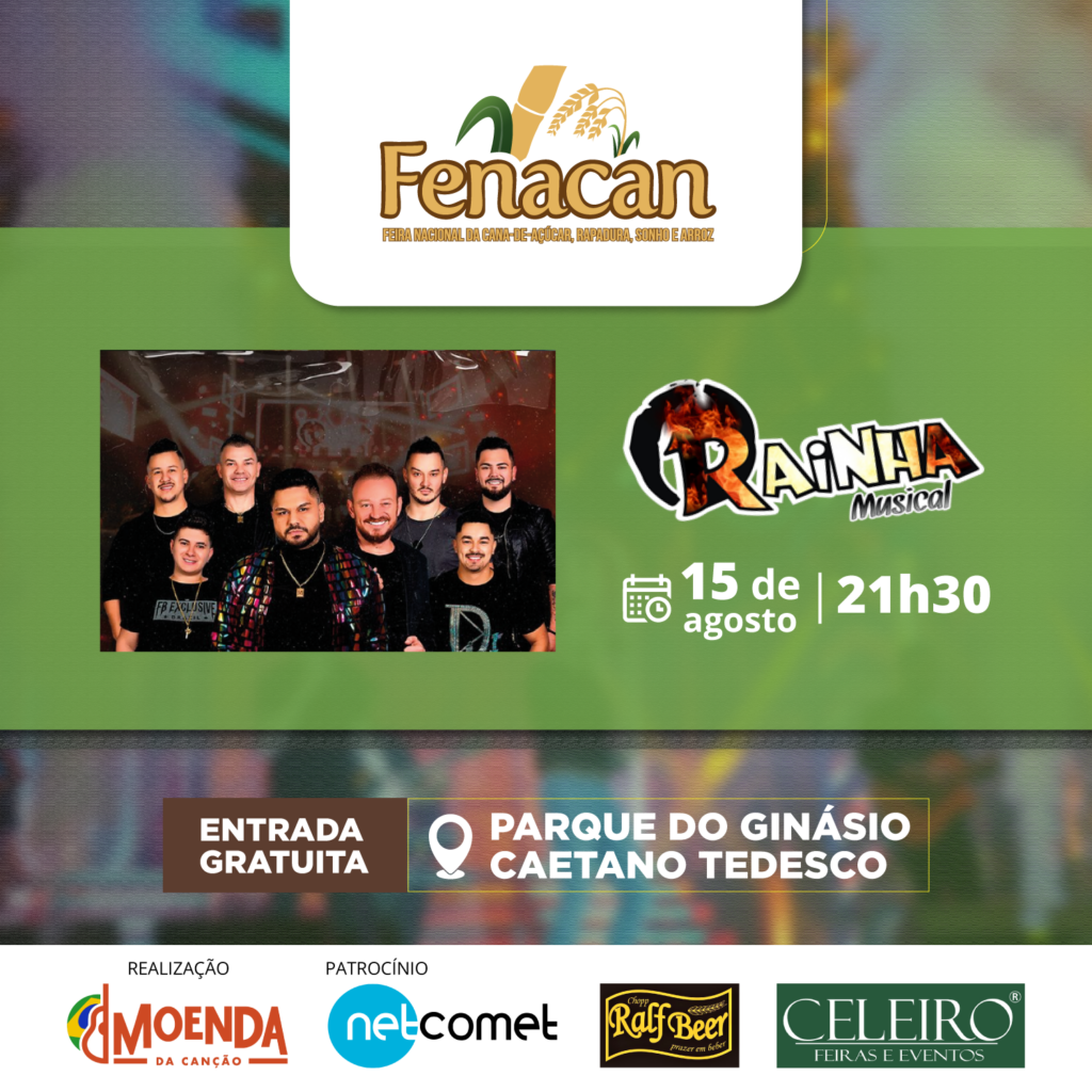 A 37ª edição da FENACAN anuncia mais uma grande atração: a renomada banda Rainha Musical! Com décadas de carreira, a banda, que lançou seu primeiro disco em 1981, é conhecida por seus sucessos como “Guardanapo” e “Do Luxo pro Lixo”. A Rainha Musical é uma das apresentações mais aguardadas deste ano.