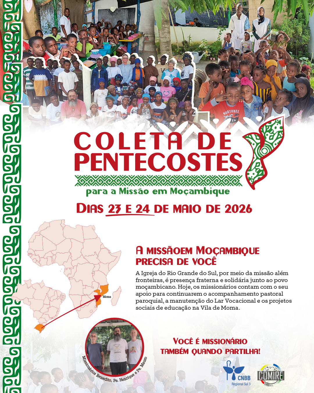 Este projeto de missão além fronteiras só se concretizou e segue existindo graças ao compromisso da Igreja de todo o Rio Grande do Sul, que assumiu a Solenidade de Pentecostes como momento fundamental de mobilização de recursos em favor de Moçambique.