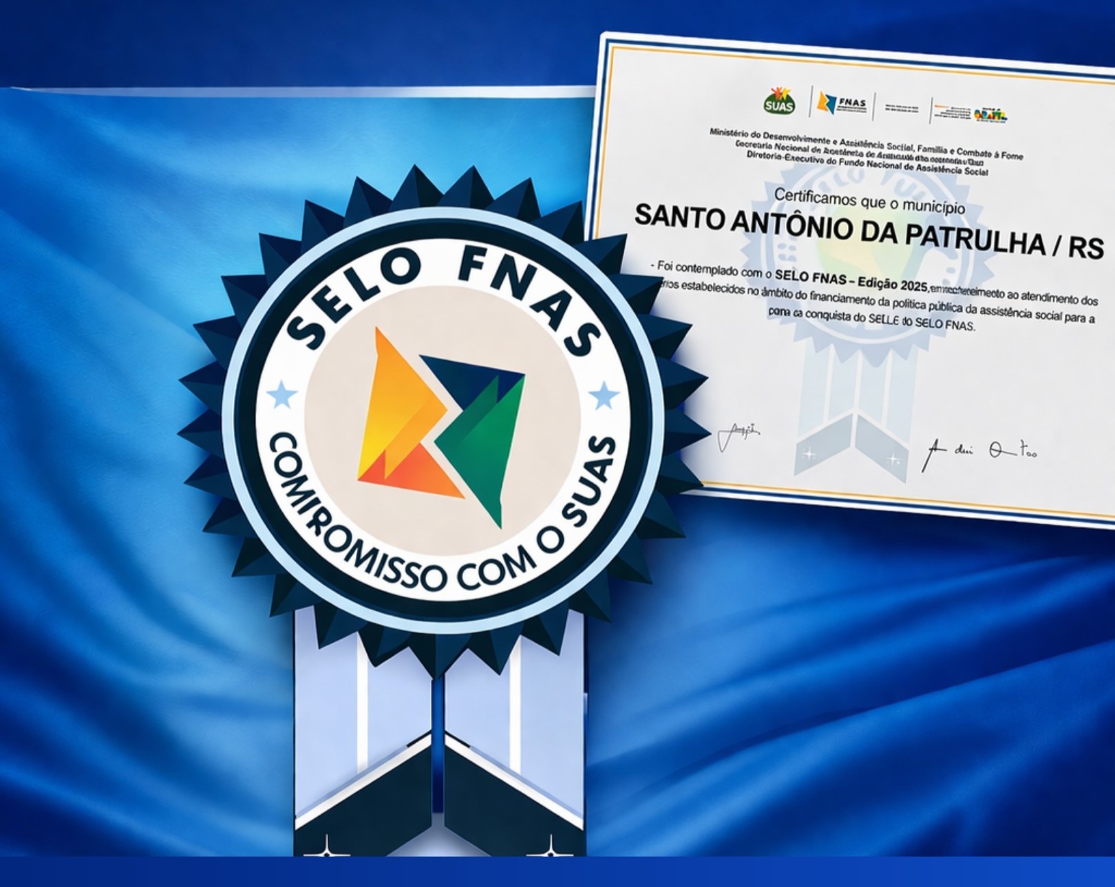 Santo Antônio da Patrulha foi contemplado com o Selo Fundo Nacional de Assistência Social (FNAS) – Edição 2025, certificação nacional que reconhece boas práticas na gestão dos recursos da Política de Assistência Social. A conquista é resultado do desempenho do município na aplicação dos recursos vinculados ao Sistema Único de Assistência Social (SUAS).