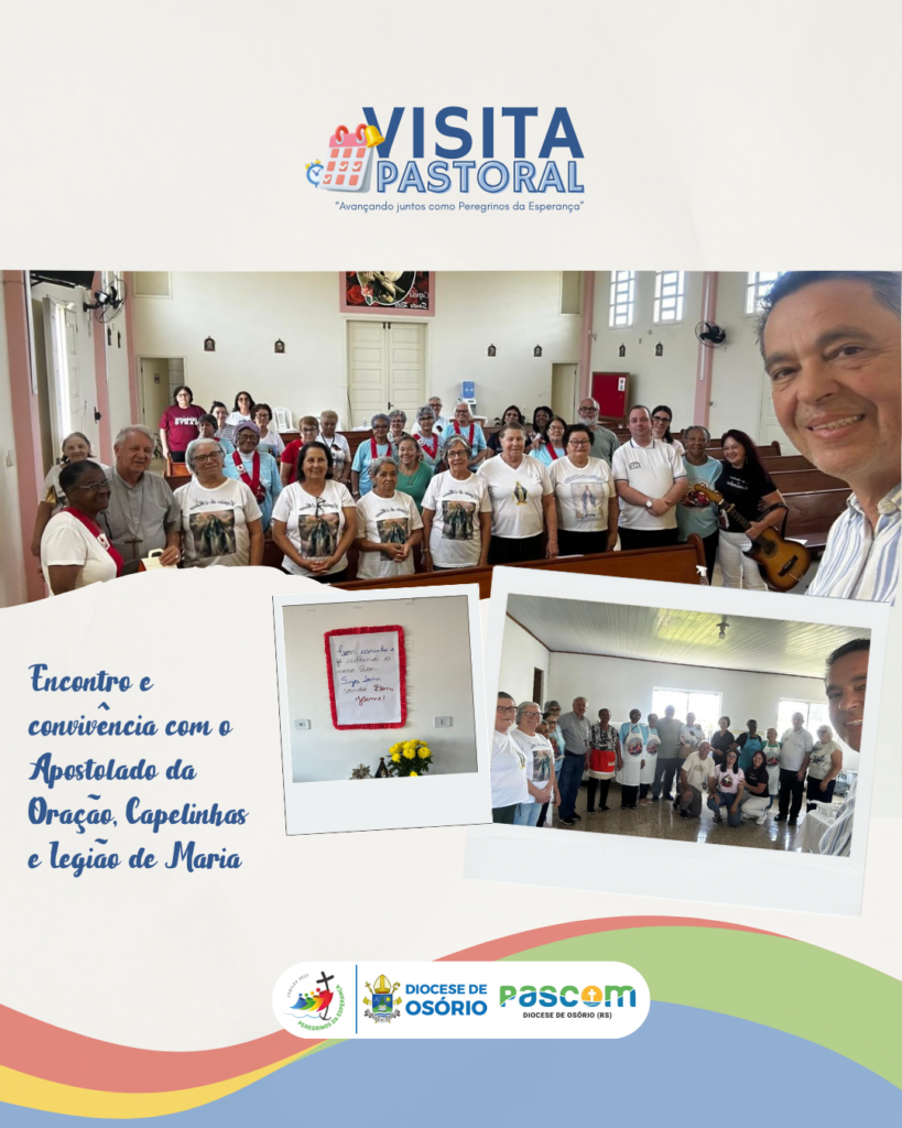 A Visita Pastoral realizada na Paróquia Nossa Senhora de Lourdes, em Capão da Canoa, entre os dias 25 e 30 de novembro de 2025, evidenciou uma comunidade dinâmica, marcada pela diversidade de pastorais, movimentos e iniciativas de evangelização, caridade e formação. A programação incluiu celebrações eucarísticas, encontros com grupos paroquiais, visitas a escolas, hospital, obras sociais, casas de acolhida a idosos e diálogo com o poder público, permitindo uma leitura ampla da realidade pastoral e social do território. A presença dos três sacerdotes que atuam na paróquia é sinal de espírito de comunhão e corresponsabilidade na condução da missão.